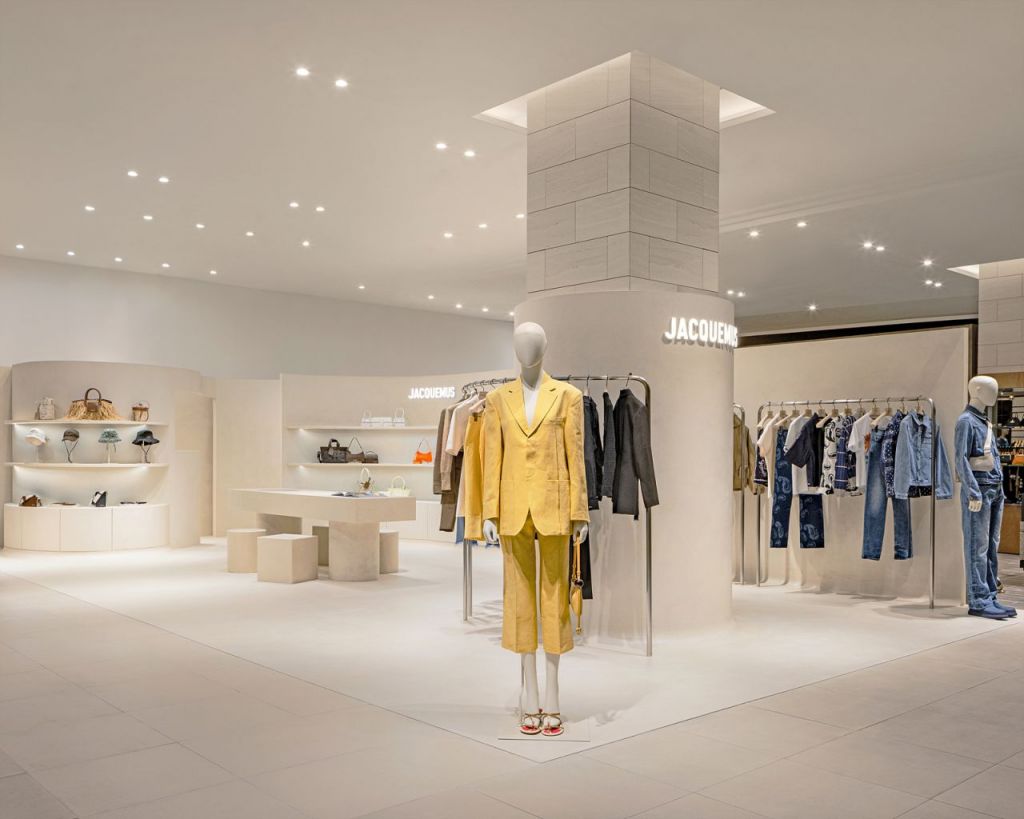 자크뮈스의 새 매장은 신세계백화점 센텀시티점 2층에 60.42㎡(약 18.3평) 규모로 마련됐다. 이번 매장은 벽면을 따라 흐르는 듯한 유려한 곡선과 기둥이 주요 디자인 요소로 활용됐다. 바닥에서 벽을 타고 가구 하부장으로 이어지는 독특한 곡선 디테일이 마치 매장 전체가 하나로 이어지는 것처럼 통일된 느낌을 주며, 질감이 살아있는 밝은 크림 톤의 페인트 소재로 매장이 완성됐다.