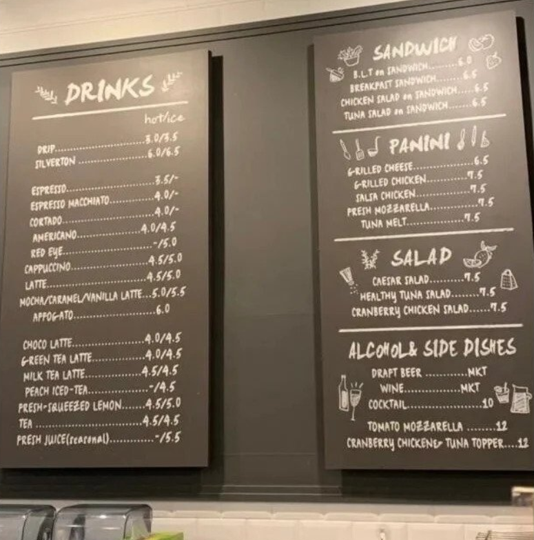 그러면서 “영어로 써놓고 진짜 외국인이 와서 영어로 주문하면 못 알아듣더라. 또 ‘1인 1음료’, ‘이용 시간’ 이런 건 기가 막히게 한글로 써놓던데 웃기지도 않는다”며 “나라에서 한국 메뉴판에 대한 법 좀 만들어줘라”고 덧붙였다.