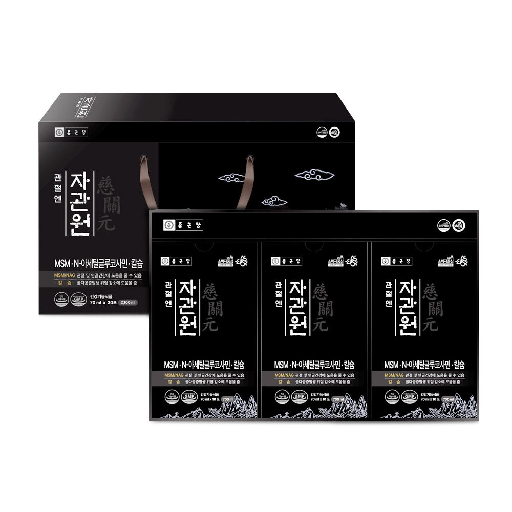 관절엔 자관원은 관절과 연골조직을 구성하는 황성분의 일종인 MSM을 비롯해 새우, 게 등 갑각류의 주성분인 키틴에서 추출한 N-아세틸글루코사민(NAG), 수용성 칼슘을 주성분으로 한다. 주성분 외에도 녹용, 홍삼, 당귀 등 20가지의 한방 소재를 배합해 기능성을 강화했다.