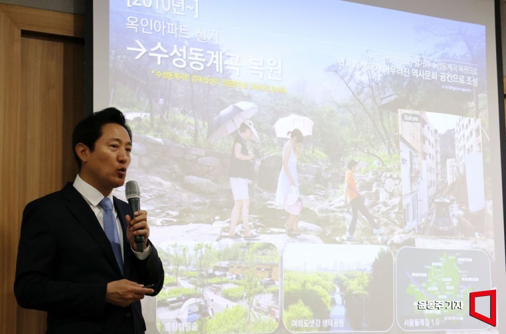 그러나 국립공원 등 외곽산림을 제외한 '도보 생활권공원' 면적은 1인당 5.65㎡에 불과해 시민이 체감할 수 있는 공원은 여전히 부족한 실정이다. 오 시장은 "자연 속 쉴 곳이 부족하니 서울시민은 주말이면 꽉 막힌 도로를 뚫고 서울을 벗어나야 한다"면서 "교통비와 적잖은 비용 때문에 여가생활을 즐기기 어려운 상황"이라고 지적했다.