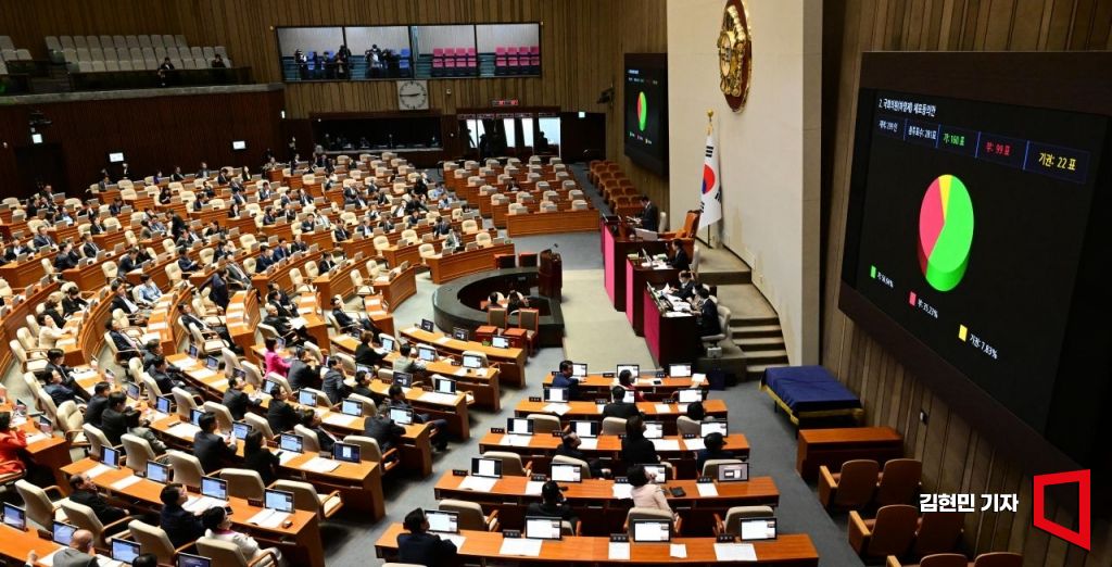 지난 3월30일 서울 여의도 국회에서 열린 본회의에서 불법 정치자금 수수 등 혐의로 구속영장이 청구된 국민의힘 하영제 의원에 대한 체포동의안이 가결되고 있다. 사진=김현민 기자 kimhyun81@