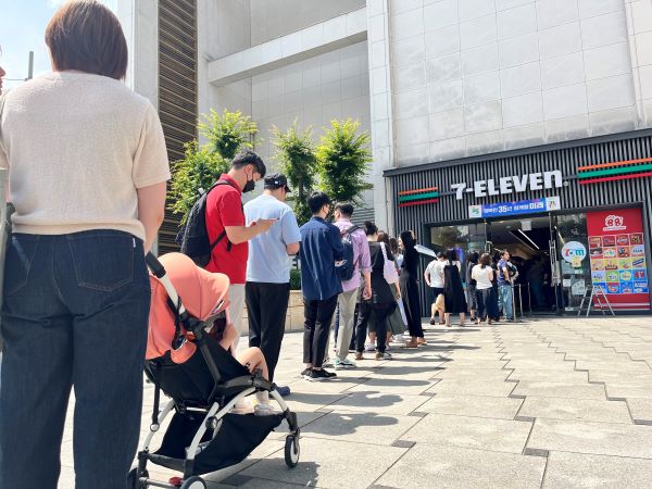 '위스키 런' 행사가 진행된 25일 오후 세븐일레븐 챌린지스토어점 앞에 한정판 위스키를 사기 위한 시민들이 줄을 서 기다리고 있다. [사진제공=세븐일레븐]