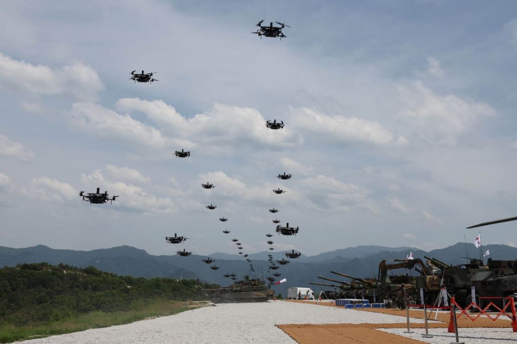 이날 훈련은 북한 공격을 격퇴하고, 한미 연합 전력을 총동원해 반격에 나서는 시나리오를 기반으로 진행됐다. 훈련장이 있는 명성산 일대에 소나기 포격이어 갔다. 훈련 시작 전 정찰 드론 및 자폭 드론 등 드론 80대가 ‘한미동맹’ 등 훈련 핵심 키워드를 상공에서 정확히 형상화했다. 훈련 1시간만에 한미 연합군의 승리를 알리는 녹색 신호탄 수백 발이 상공에서 터졌다.