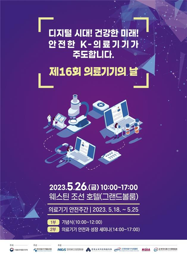 식품의약품안전처는 ‘제16회 의료기기의 날’을 맞아 ‘디지털 시대! 건강한 미래! 안전한 K-의료기기가 주도합니다’라는 주제로 기념식과 세미나를 서울 웨스틴 조선에서 26일 개최한다.