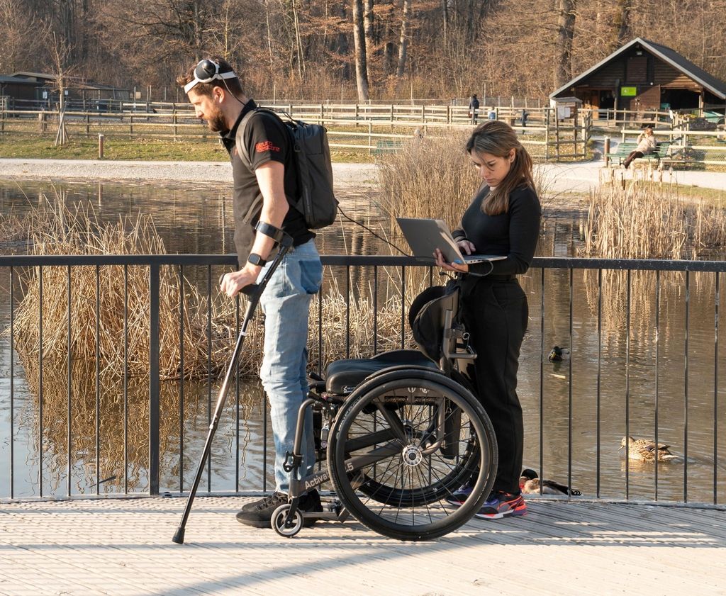 '뇌-척수 인터페이스'(BSI) 이용해 걷기 훈련하는 척수마비 환자. [사진 출처=CHUV / Gilles Weber·연합뉴스]