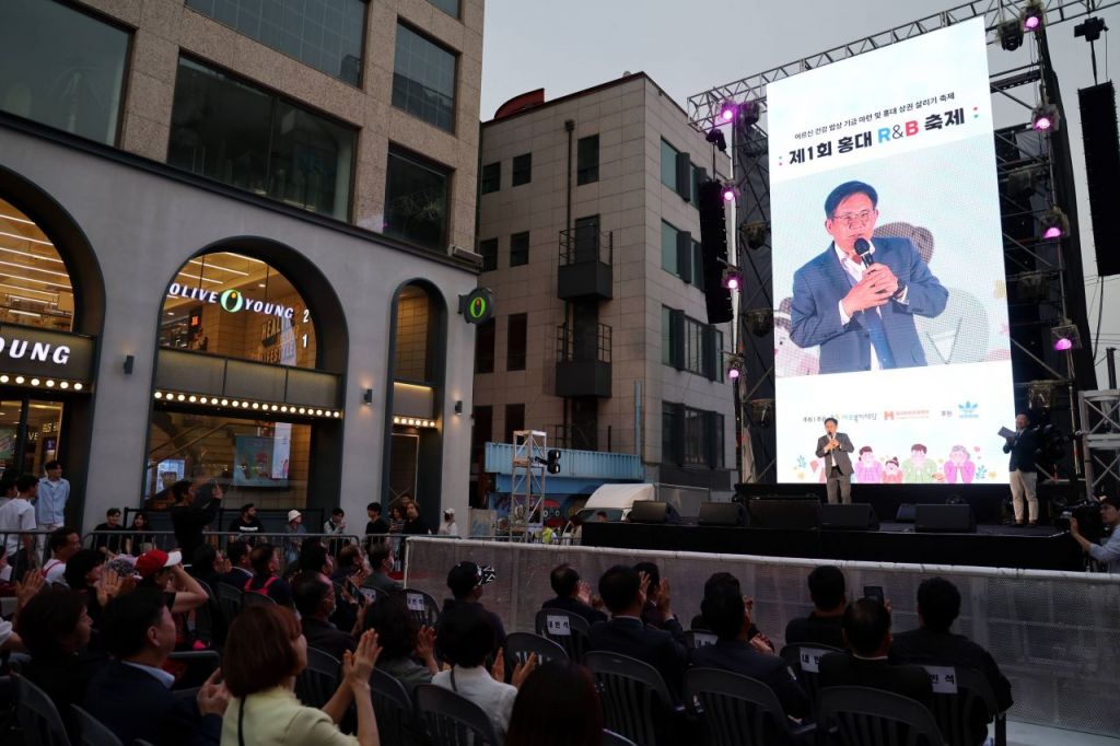 박강수 마포구청장이 26, 27일 이틀간 열린 제1회 홍대 R&B 축제의 개막식에서 인사말을 하고 있다.