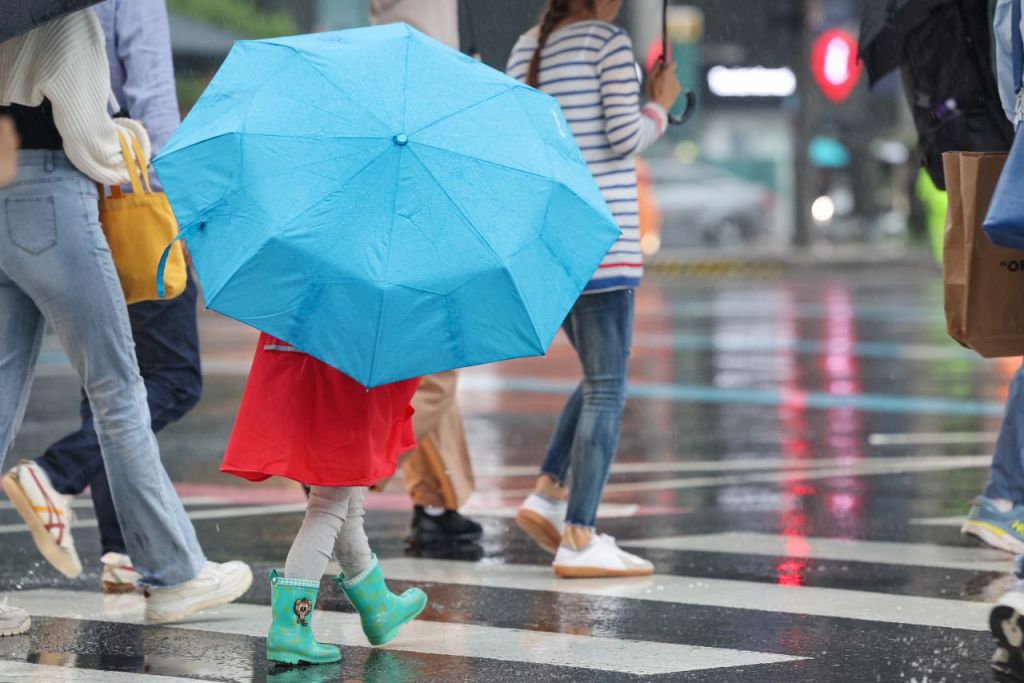 27일 서울 광화문네거리에서 어린이가 우산을 쓰고 횡단보도를 건너고 있다. [사진출처=연합뉴스]