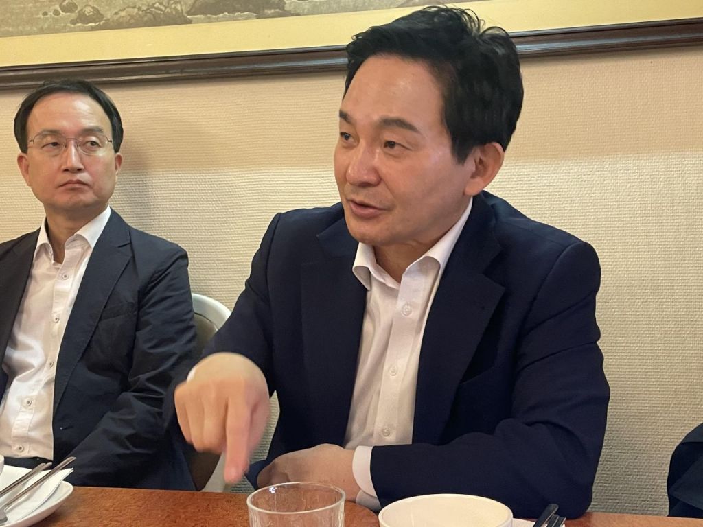 원희룡 국토교통부 장관이 26일(현지시간) 독일 베를린에서 특파원들과 간담회에서 질의응답하고 있다. / 사진출처=연합뉴스