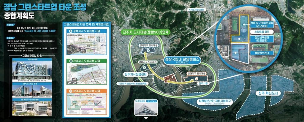 도는 지방비 180억원과 경상국립대 부지 제공 등을 포함한 총사업비 453억원을 투입해 2025년까지 진주 경상국립대학 칠암캠퍼스에 그린 스타트업 타운을 건립할 예정이다.
