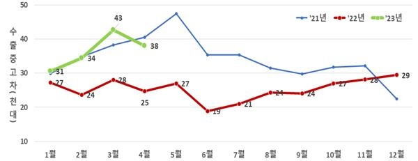 인천항의 지난달 신차 교역량은 2만3000대로 지난해 같은 기간 1만4000대보다 62% 높은 것으로 집계됐다.