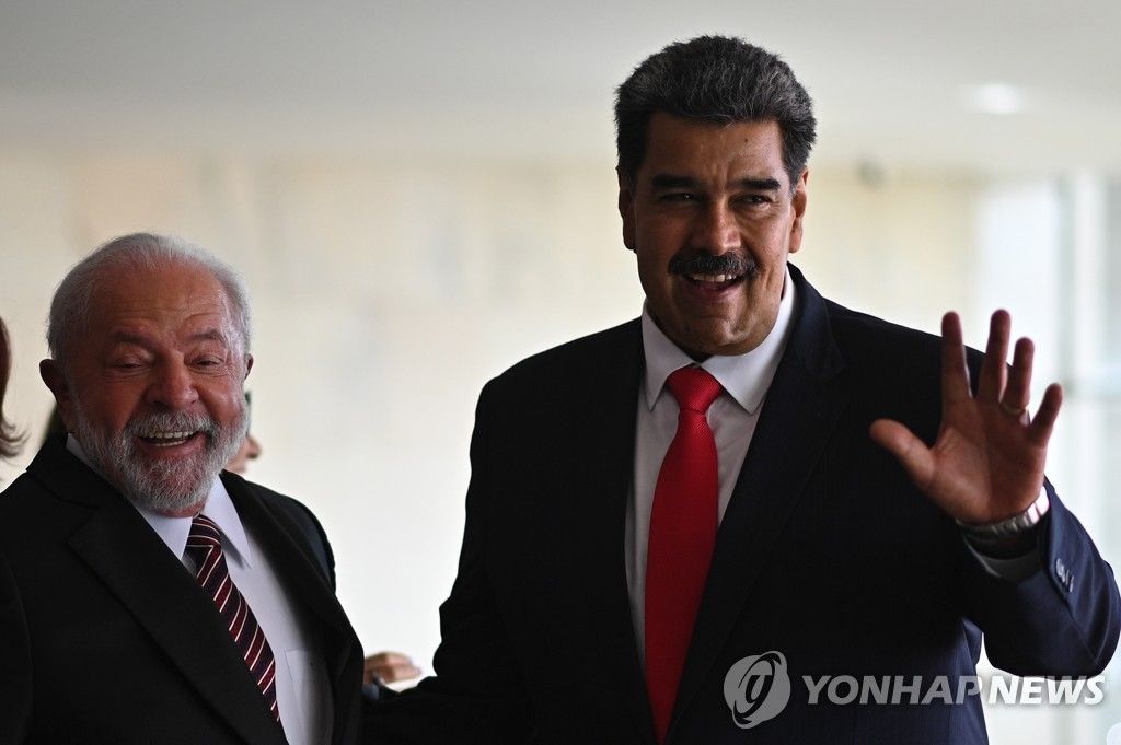 룰라 대통령은 29일(현지시간) 수도 브라질리아에 있는 대통령궁에서 니콜라스 마두로 베네수엘라 대통령을 영접하고 정상회담을 가졌다. 양국 정상이 정상회담을 가진 것은 지난 2015년 이후 8년 만이다.