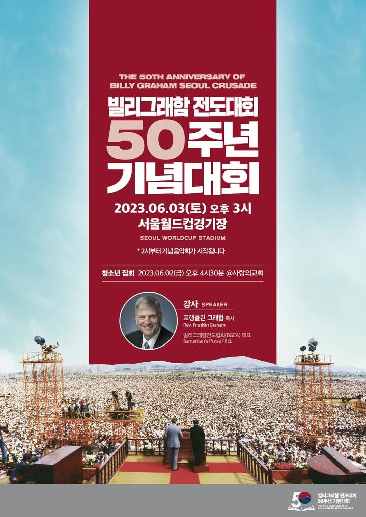 '빌리 그래함 전도대회 50주년 기념대회'가 내달 3일 오후 3시 서울 마포구 상암동 서울월드컵경기장에서 열린다.
