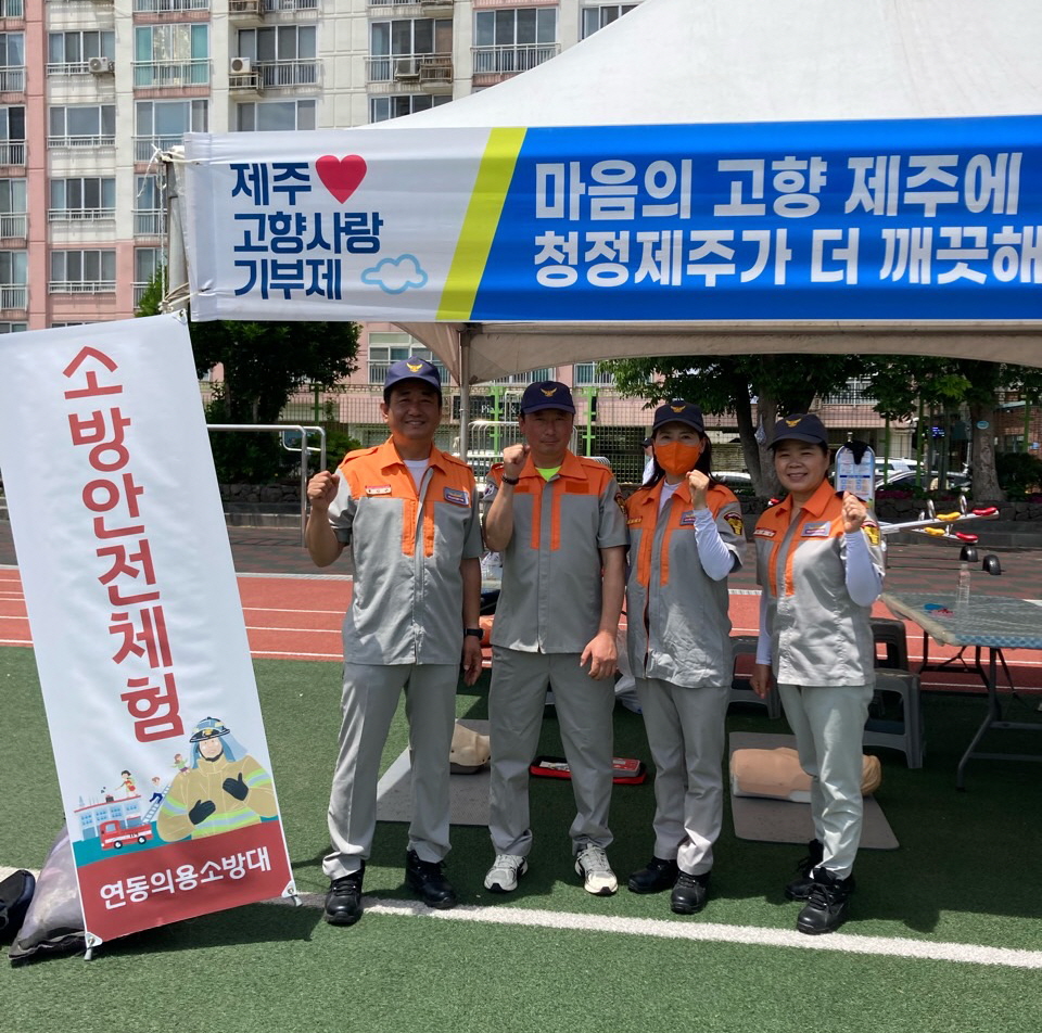 연동119센터 소방대원과 연동의용소방대원(대장 김영종, 고수정) 4명이 참석한 가운데 연동동민 한마음체육대회 행사 안전관리와 더불어 심폐소생술 교육 및 소화기 사용방법 등 주택용 소방시설 설치 홍보를 실시했다.
