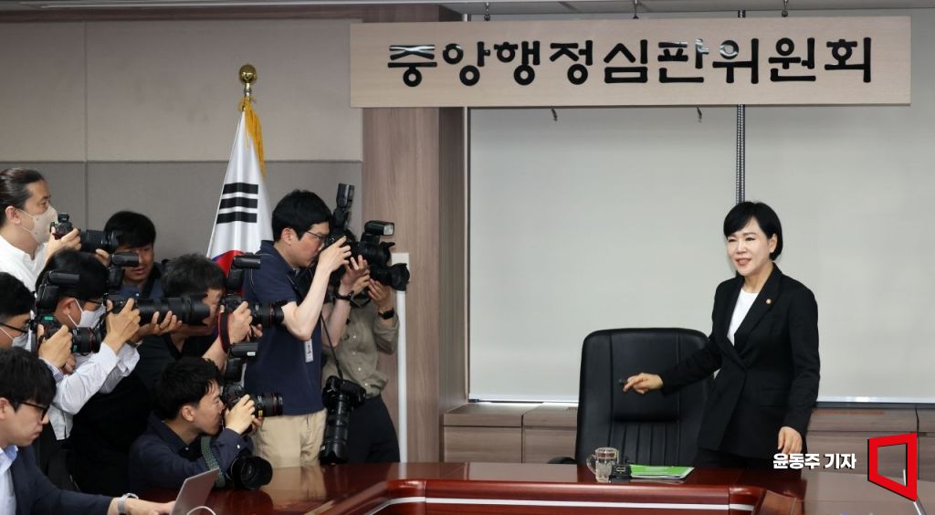 전현희 권익위원장이 30일 서울 종로구 정부서울청사에서 '긴급 현안 관련 기자간담회'를 갖기 위해 회의장으로 들어서고 있다. 사진=윤동주 기자 doso7@