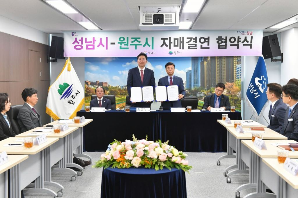 경기 성남시가 30일 강원도 원주시와 상호 교류 및 우호 증진 협력을 위한 자매결연 협약을 체결했다.