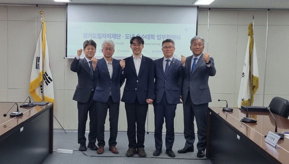 경기일자리재단은 30일 부천시 일자리재단 중회의실에서 가톨릭대학교, 부천대학교, 중앙대학교 다빈치 캠퍼스, 한세대학교와 대학생 취업역량 강화와 미래인재 양성 지원을 위한 업무협약식을 가졌다고 밝혔다.