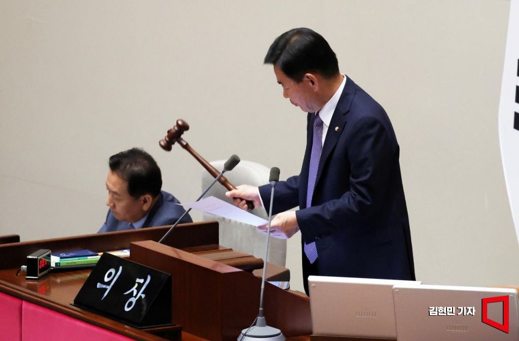 헌법 53조에 따르면 대통령이 재의요구권을 행사한 법안은 재적의원 과반수 출석과 출석의원 3분의 2 이상이 찬성해야 의결된다. 현재 국회 전체 의석 299석 중 국민의힘(114석)이 집단 부결하면 가결이 불가능한 구조다.