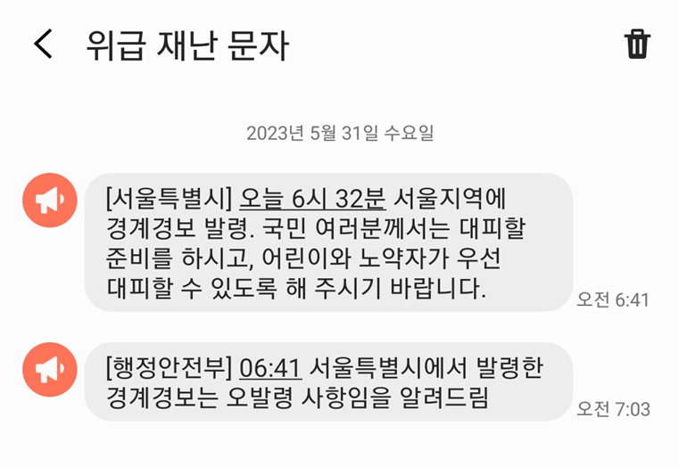 서울특별시가 31일 서울지역에 위급재난문자를 잘못 발송한 가운데 시민들이 한때 혼란을 겪었다.