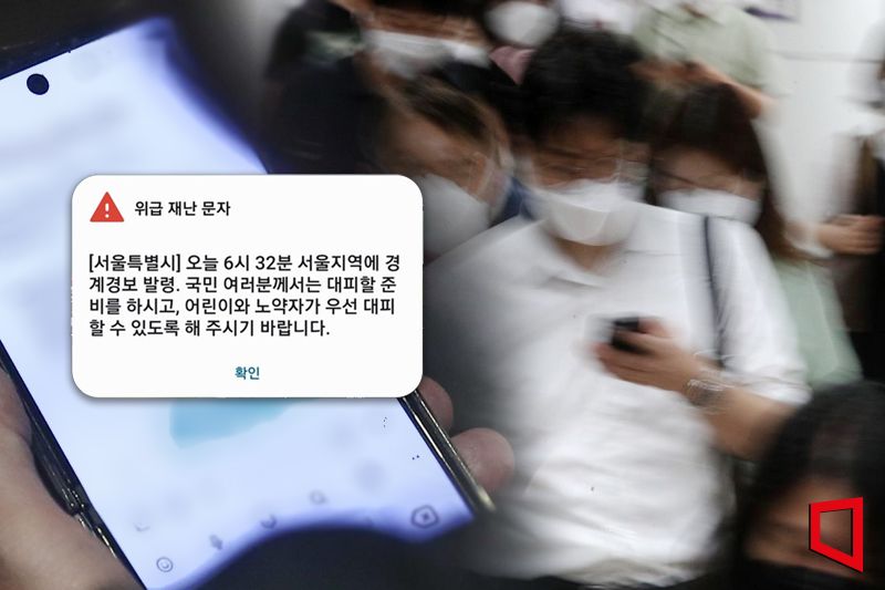 개인의 장난 문자도 아니고, 지방자치단체가 보내온 경고 문자였다. 이날 문자가 전해진 시각, 오금 방향으로 향하던 서울 지하철 3호선 내부. 홍제역에서 무악재역 방향으로 향하는 지하철 내부의 시민들에게도 서울시의 문자가 전달됐다. 곳곳에서 울리는 문자 알림음. 서 있거나 앉아 있던 시민들은 거의 동시에 휴대폰을 주시했다.