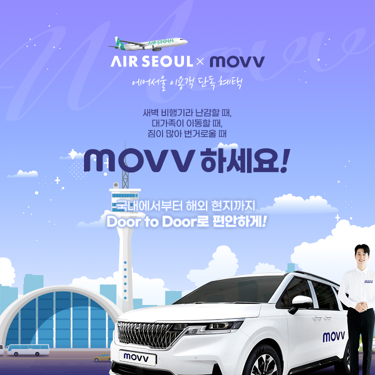 에어서울은 글로벌 트래블 모빌리티 플랫폼 무브(MOVV)와 제휴해 국제선 여행객 대상으로 다양한 이동 편의 서비스를 제공한다고 1일 밝혔다.