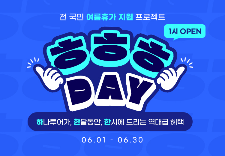 ㅎㅎㅎ DAY는 '하나투어가 한 달 동안 한시에 드리는 혜택'의 자음을 조합해서 만들었다. 이름에 걸맞게 6월 한 달 동안 하나투어 닷컴과 모바일 하나투어에서 다양한 할인 프로모션과 이벤트를 진행한다.