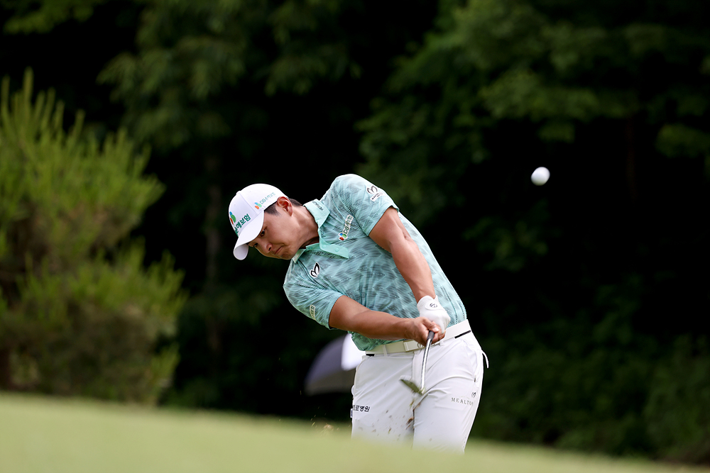서요섭이 데상트코리아 매치플레이 조별리그 2차전 2번 홀에서 아이언 샷을 하고 있다. [사진제공=KPGA]