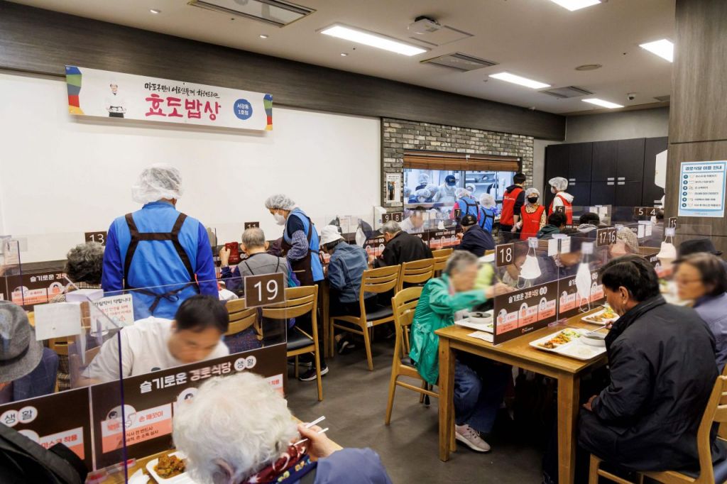지난 4월 개소한 효도밥상 급식 기관인 서강동 1호점에서 어르신들이 식사를 하고 있다.