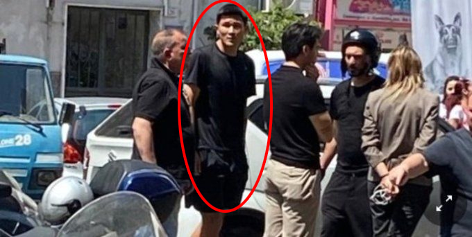 교통사고 소식과 함께 공개된 당시 사진에는 김민재가 어두운 얼굴에 뒷짐을 지고 사고 상황을 살피는 모습이 담겼다. [사진출처=일 마티노]
