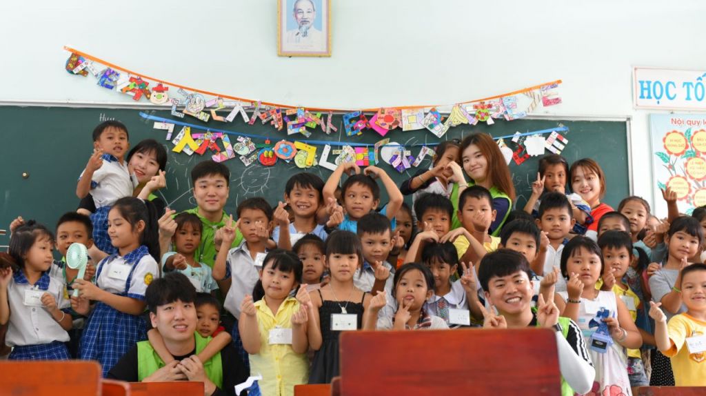 LS 대학생 해외봉사단 24기 단원들이 베트남 동나이성에서 초등학생들에게 교육봉사를 하고 있다. [사진제공=LS]
