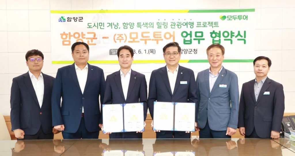 모두투어는 경남 함양군과 웰니스 관광 여행 상품 개발 프로젝트 추진을 위한 업무협약식을 개최했다고 2일 밝혔다.