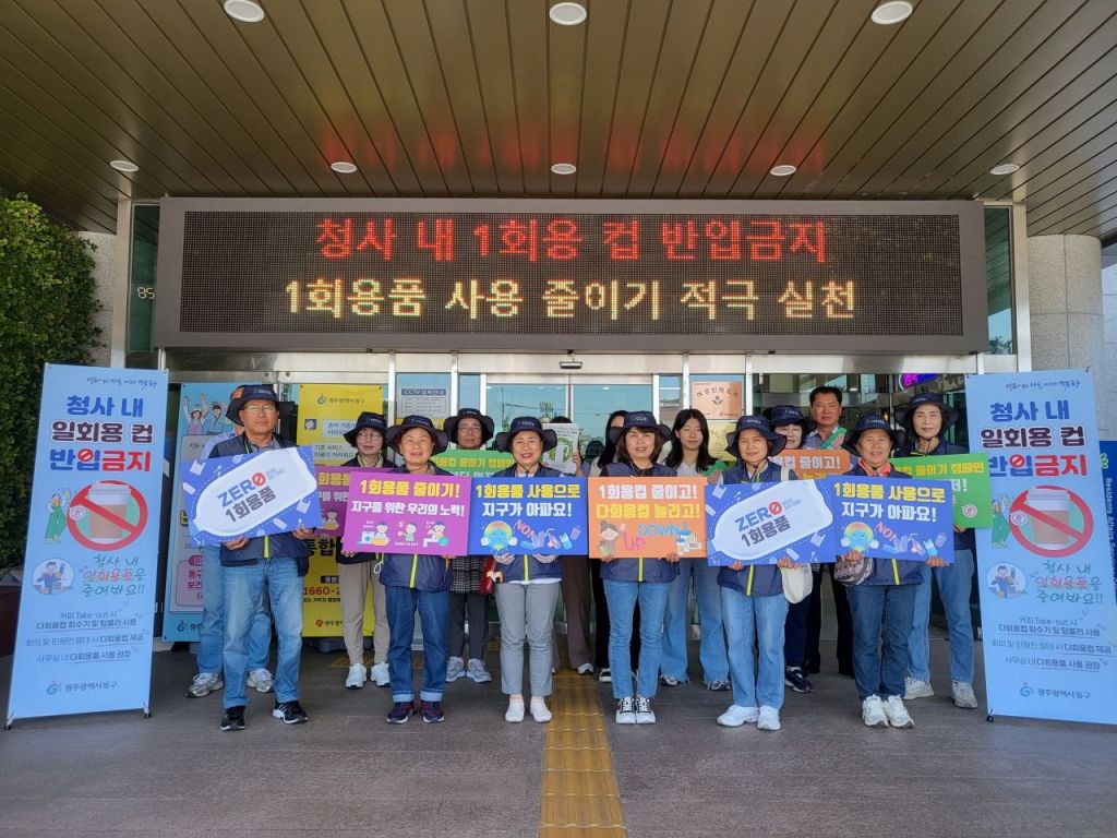 광주광역시 동구가 직원과 방문객을 대상으로 ‘일회용 컵 사용금지 캠페인’을 진행했다.
