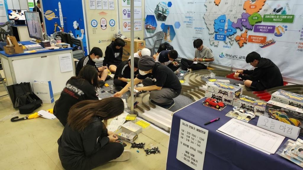 경남진로체험박람회의 경남교육청 부스에서 아이들이 미래자동차를 만들고 있다. [사진제공=경남교육청]