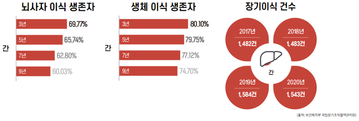 최근 수술의 발달 등으로 3년 생존률은 80% 이상으로 보고돼 있다. 이승환 교수는 “수술에 성공하면 단순히 몇 년 더 사는 정도가 아니라 평생 건강하게 지낼 수 있다”며 “경험이 늘어나면서 최근 간 이식 대상 환자의 폭이 점차 넓어지고 있으며, 이전에는 꺼렸던 60세 이상 환자의 수술도 성공률이 높아져 간 이식에 관한 관심도 커지고 있다”라고 설명했다.