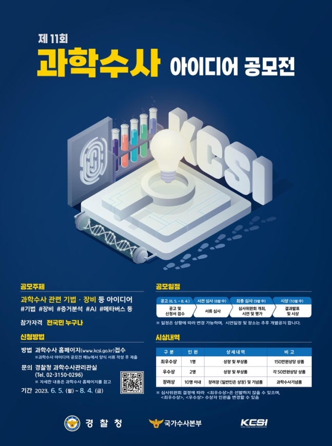 경찰청 국가수사본부 제11회 과학수사 아이디어 공모전을 연다고 4일 밝혔다.