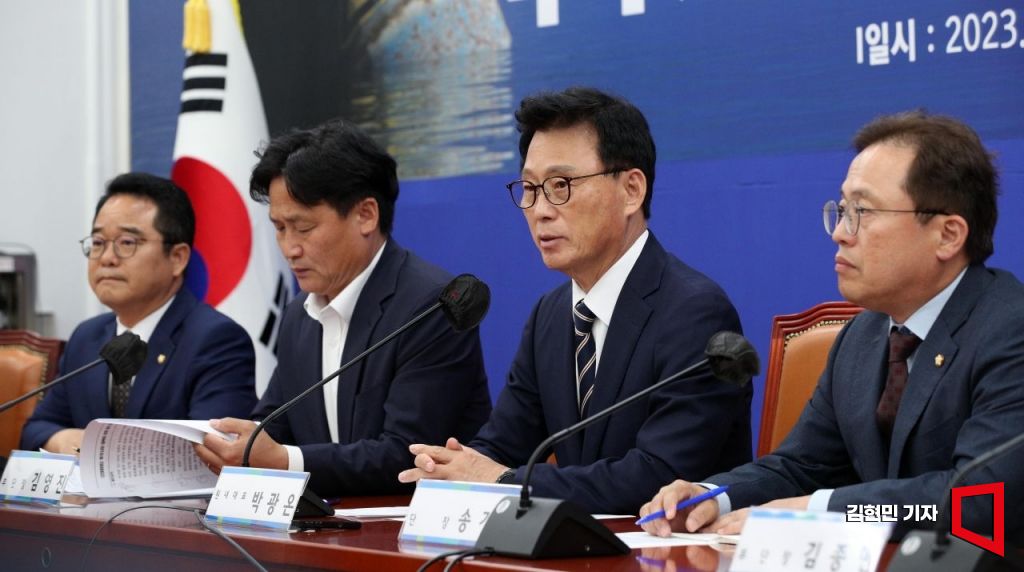박광온 더불어민주당 원내대표가 5일 국회에서 열린 후쿠시마 오염수 원내대책단 출범식에서 발언하고 있다. 사진=김현민 기자 kimhyun81@