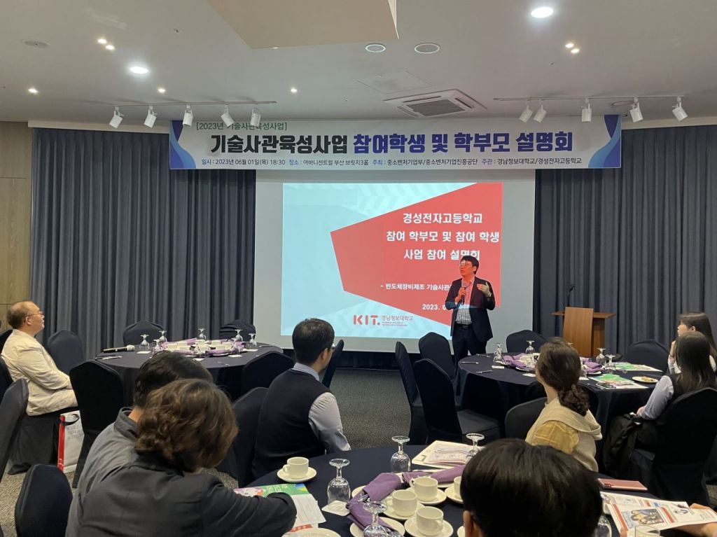 경남정보대학교(총장 김대식) 반도체과 기술사관육성사업단이 경성전자고교 전자제어과 학생들과 학부모를 대상으로 ‘2023년 기술사관육성사업 사업 참여 설명회’를 개최했다.