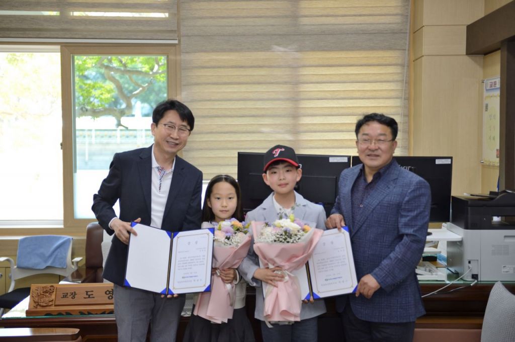 그림공모전 최우수상 부구초교 3학년 김정음(좌측), 5학년 송유찬(우측) 어린이.