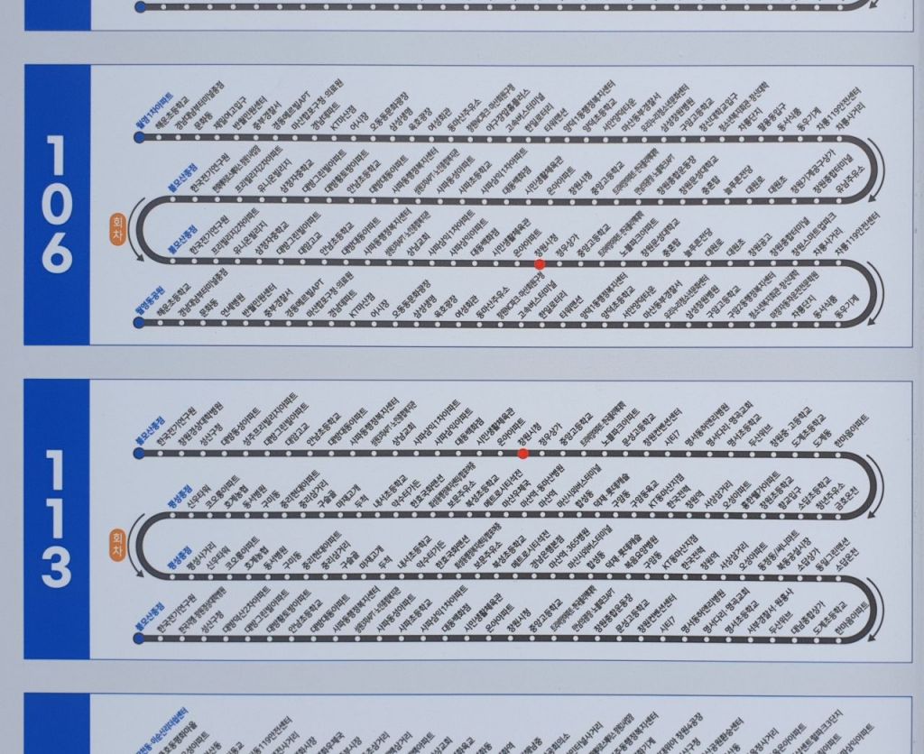 현재 창원 전역에 부착된 노선도는 편도가 아닌 왕복 정류장이 기재돼, 버스 한 대가 오가는 정류장을 모두 알 수 있다.