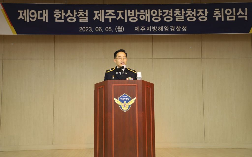 이날 취임식에서 한상철 신임 청장은 “국민의 안전과 재산을 보호하는 해양경찰로서 적극적인 자세로 사명감을 가지고 모두 하나가 돼 안전하고 깨끗한 희망의 제주 바다를 위해 국민에게 신뢰받는 제주해경을 만들자”고 말했다.