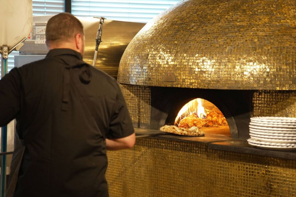 2일 서울 용산구 베라 한남점에서 열린 세계 피자 마스터 협업 행사에서 피자 마스터가 베라의 '베수비오 화산석 화덕'을 이용해 직접 피자를 구워내고 있다. [사진제공=SPC]
