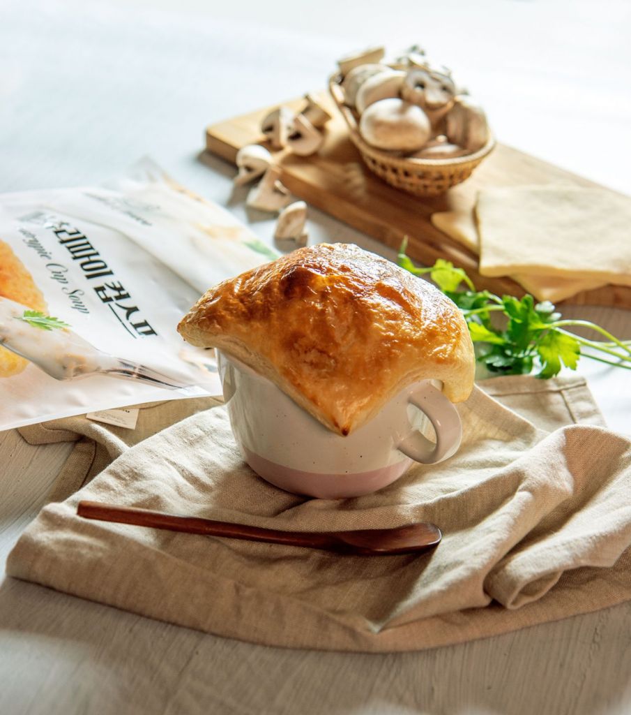 베키아에누보 페스츄리파이 컵스프는 알알이 양송이가 씹히는 부드러운 양송이 스프와 고소한 버터의 풍미가 가득한 페스츄리 생지를 함께 즐길 수 있도록 구성했다. 중탕한 스프를 컵에 붓고 냉장고에서 해동을 거친 생지를 컵 위에 뚜껑처럼 덮어 에어프라이어에 넣고 5분 정도 조리하면 된다.