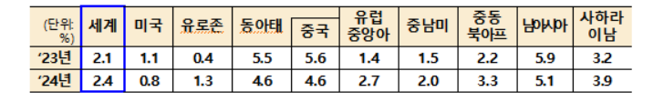 다만 신흥·개도국 중심으로 잠재성장률 하락 우려가 있다고 봤다. 긴축통화정책과 재정건전화 영향으로 외부수요가 약해지면서 중국 외 국가의 성장은 제약된다는 진단이다. 중국 4.0%, 유럽·중앙아시아 1.5%, 중남미 1.5%, 중동·북아프리아는 2.2% 성장률을 전망했다.