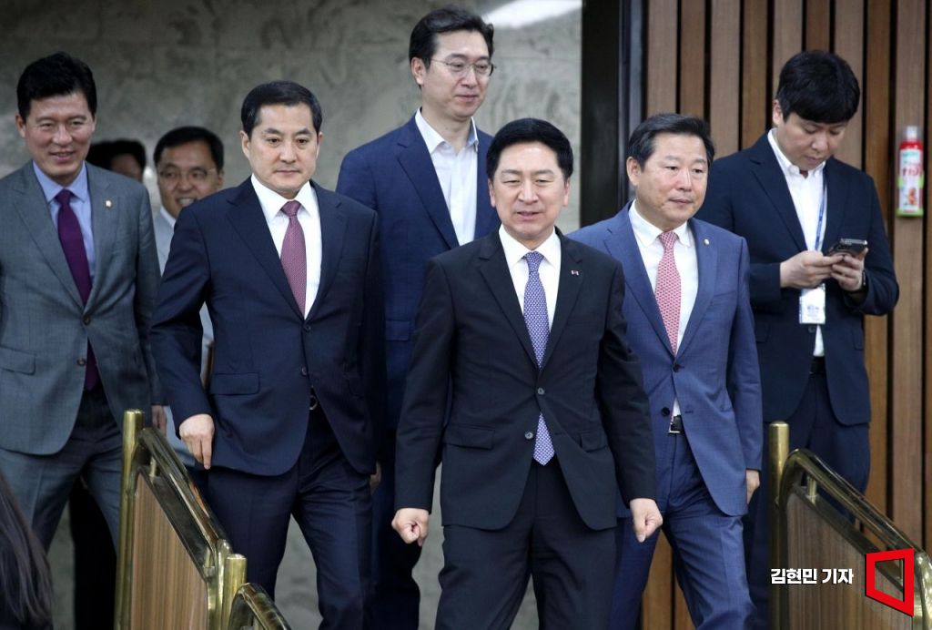 김기현 국민의힘 대표가 7일 국회에서 열린 확대당직자회의에 참석하고 있다. 사진=김현민 기자 kimhyun81@