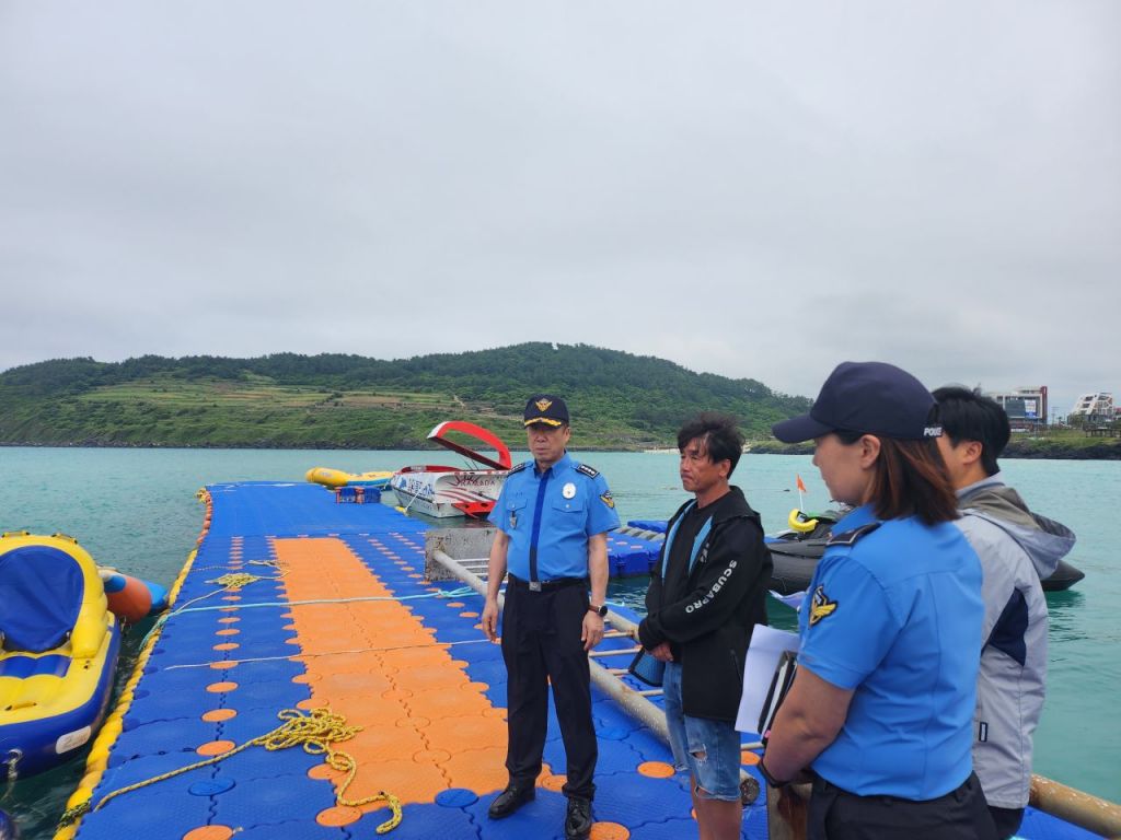 제주해양경찰서(서장 소병용)는 7일 제주시 관내 주요 수상레저사업장 2개소(함덕·삼양)와 조종면허시험장(도두) 1개소에 대한 안전 점검을 실시했다고 밝혔다.