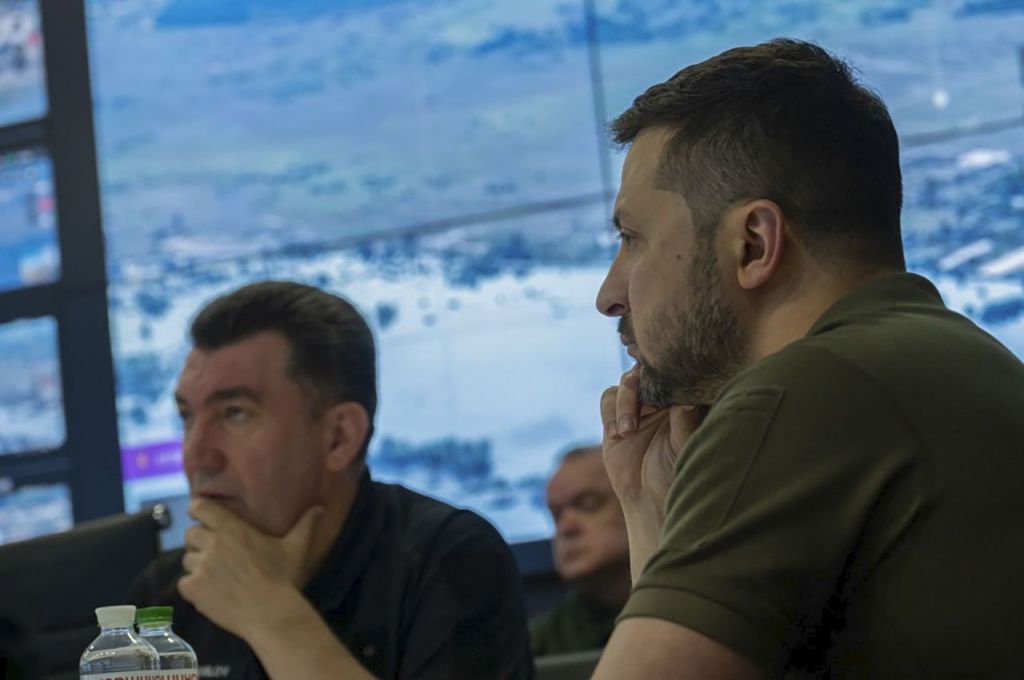 볼로디미르 젤렌스키 우크라이나 대통령(오른쪽)이 6일(현지시간) 헤르손주 카호우카 댐이 원인 미상 폭발로 파괴된 뒤 국가안보위원회 긴급회의를 소집해 주재하고 있다. 젤렌스키 대통령은 이날 러시아가 댐 구조물을 내부에서 폭발시켰다며 "전 세계가 카호우카 댐 공격에 대응해야 한다"고 주장했다. 러시아는 우크라이나를 배후로 지목하며 진실 공방을 벌이고 있다. [이미지출처=연합뉴스]