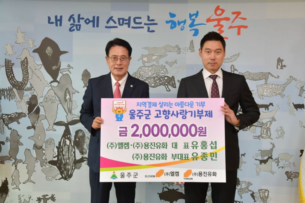 용진유화 유홍섭 대표가 고향사랑기부제의 안정적 정착과 기부문화 동참을 위해 8일 울산 울주군에 고향사랑기부금 200만원을 전달했다.