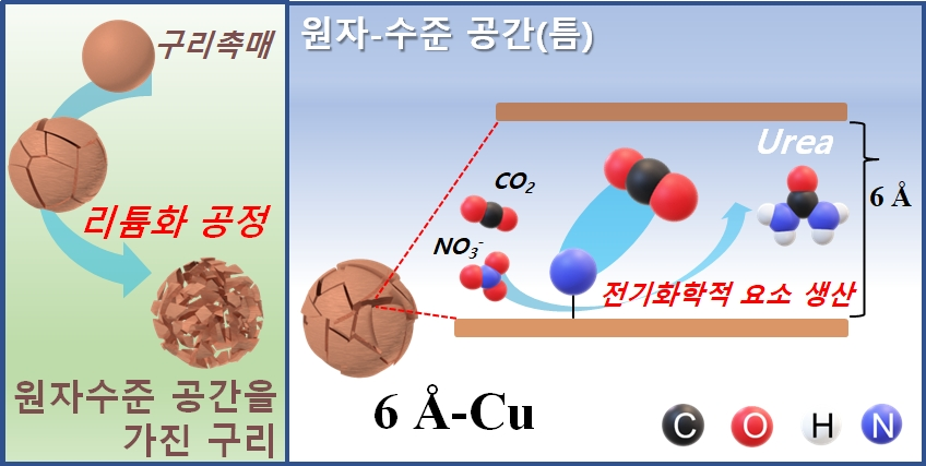 제1 저자인 신석민 석박통합과정 연구원은 “기존의 구리 촉매는 요소의 선택도가 낮아 경쟁 반응을 억제하며 높은 선택도를 보이는 촉매의 개발이 필요했다”며 “구리 촉매에 원자 수준의 틈을 도입해 고성능·고내구성 요소 생산 촉매를 개발했다”고 말했다.