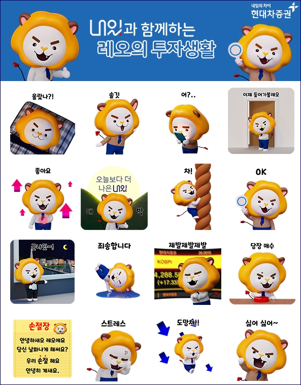 이번 이모티콘은 사자를 형상화한 현대차증권의 대표 캐릭터 ‘레오’를 활용해 움직이는 3D 버전으로 제작됐다.