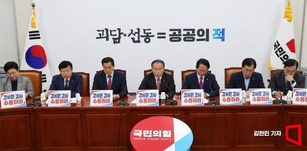 윤재옥 국민의힘 원내대표가 9일 국회에서 열린 원내대책회의에서 발언하고 있다. 사진=김현민 기자 kimhyun81@