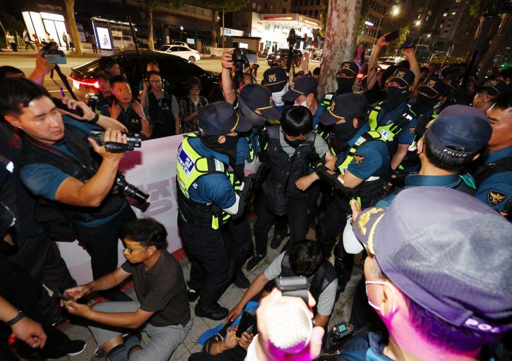 이후 경찰은 오후 9시20분께까지 15차례에 걸쳐 경고 방송을 하고 서초경찰서장 명의로 해산명령을 3차례 한 뒤 9시22분께 경력을 투입해 참가자들을 대법원 반대편 인도로 밀어내는 강제해산에 돌입했다.